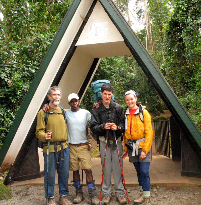 Having finished my book on Boundaries in Psychotherapy in early 2007, the perennial question, “What’s next for me?” returned. I had been searching for what gives me joy and meaning at this stage of my life. Watching the movie Motorcycle Diaries threw me deeper into an “existential funk” and further into questioning my calling. Upon reflection, I came up with two responses: The first is to go (part time) back to my old stomping grounds in Africa and see how I can apply myself for the good of humanity. Secondly, to challenge the boundary of air and oxygen by daring to climb with my son, age 14, and our very close family friend Sarah, 24, the awesome 19,300 feet of Mount Kilimanjaro in Tanzania, also known as the “Roof of Africa.” We left for our trip on June 13th, 2007 and took the Rongai (northern) Route over seven days. We followed the climb by going on Safari at the spectacular Serengeti and the Ngoro Ngoro game reserves. More about the trip